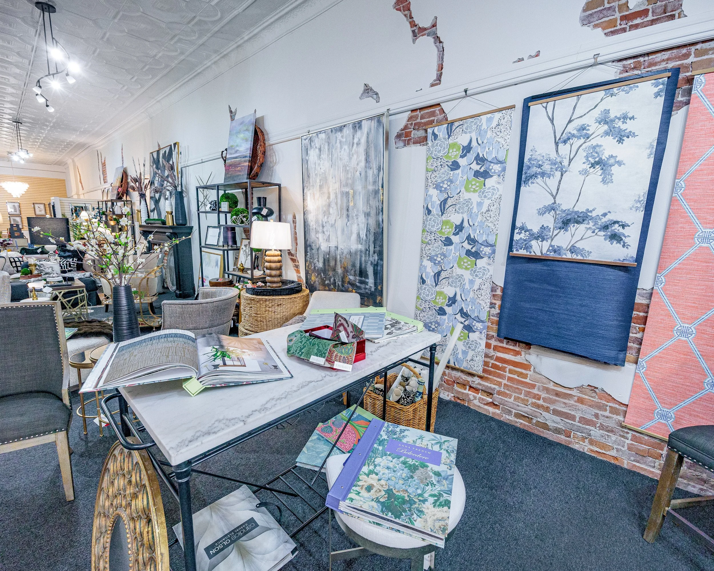 A destination for design options including coffee tables, lamps chairs, art, dining tables, rugs and accessories.
